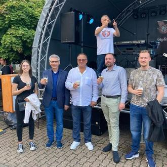 Im Anschluss an den Festzug begrüßte Thomas Ackermann auf der Bühne unter anderem den Schirmherrn der Veranstaltung, Herrn Ralf Pönicke, sowie den 2. Beigeordneten der Gemeinde Beckingen, Marvin Bimperling. In seiner Ansprache dankte Ackermann allen beteiligten Vereinen, Helferinnen und Helfern, den Anwohnern der Feststraße sowie der Gemeinde Beckingen für die Unterstützung der Veranstaltung.