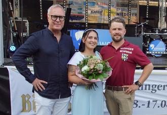 Zu dem beliebten Volksfest Beckinger Schmaus, das vom 15. bis 17. August in seiner 40. Auflage auf dem Alois-Jacobs-Platz vor dem Rathaus ausgiebig gefeiert wurde, kamen wieder viele Besucher aus nah und fern. Das Team der Vereinsgemeinschaft unter Vorsitz von Frederik Zenner bot auch diesmal als Veranstalter eine abwechslungsreiches Unterhaltungsprogramm sowie Speisen und Getränken für das leibliche Wohl. Los ging es freitags abends. Team-Mitglied Christian Tils und der VG-Vorsitzende Zenner begrüßten die Besucher und offiziellen Gäste, darunter den Schirmherrn Frank Jakobs, MdB Philip Hoffmann, MdL Sebastian Schmitt, Bürgermeister Thomas Collmann, Ortsvorsteher Elmar Seiwert, Pastor Helmut Mohr und andere. „Ihnen allen gilt ein herzliches Willkommen zum 40. Beckinger Schmaus, für den wir keine Kosten und Mühen gescheut haben“, erklärte Zenner. Dann gratulierte Schirmherr Frank Jakobs, Vorstandsvorsitzender der Sparkasse Merzig-Wadern, zum Jubiläum, das zu Recht gefeiert werde. Er betonte: „40 Jahre Beckinger Schmaus, die Zahl spricht für sich und verdeutlicht die Beliebtheit dieses Volksfestes in unserer Region. Mein erster Besuch des Festes war übrigens 1987 als junger Auszubildender der damaligen Kreissparkassse Merzig mit längerem Einsatz im Marktbereich Beckingen. Zu diesem Zeitpunkt hätte ich mir nicht vorstellen können, dass ich 38 Jahre später als Vorstandsvorsitzender der Sparkasse Merzig-Wadern hier auf der Bühne stehe. Es ist mir eine Ehre und Freude, heute als Schirmherr anlässlich des besonderen Ereignisses 40. Beckinger Schmaus vor Ort zu sein. Dieses Fest steht nicht nur für Spaß und Freude, sondern auch für den tiefen Zusammenhalt einer starken Vereins- und Gemeindegemeinschaft. Es zeigt wie wichtig es ist, die Tradition zu wahren und gleichzeitig durch das Programm neue Impulse zu setzen, die die Gemeinschaft lebendig halten und Menschen immer wieder zusammenkommen lässt. Als regionale Kreditinstitut ist es unser Anspruch, nicht nur wirtschaftlich erfolgreich zu sein. Wir sind auch dem Gemeinwohl verpflichtet. Ich wünsche eine schöne Jubiläumsfeier und bin genauso wie Sie gespannt, wer in diesem Jahr Schmauskönigin wird.“ Dieses Geheimnis wurde dann mit dem Erscheinen der neuen Hoheit auf der Bühne umgehend gelüftet. Es war die 24-jährige Mara Heß, die zwar in Haustadt wohnhaft ist, aber gerne in Beckingen unterwegs und bei Veranstaltungen dabei ist. Die Auszubildende zur Zahnmedizinischen Fachangestellten wurde auf dem Bunkerfest gefragt und sagte zu. „Es gefällt mir hier sehr gut, ist aber ein bisschen aufregend, wenn man vor den Leuten steht“, verriet sie. Zusammen mit weiteren Gästen und Teammitgliedern stand die Schmauskönigin dann beim Schirmherrn Jakobs, der geschickt das erste Fass anschlug und Freibier in die Gläser fließen ließ. Für gute Unterhaltung mit Live-Musik sorgte anschließend die Gruppe Tonwerk. Am Samstagabend gab es eine Schlager/Retroparty mit DJ Monti und eine sehenswerte Feuershow mit Prometheus Erben. Sonntags nachmittags wurde den kleinen Festbesuchern ein unterhaltsames Kinderprogramm mit dem Zauberer Mr. Pit, der Gruppe Mystic Couture mit Schminken, Tattoos und Basteln, einer Hüpfburg, Spielen des TV Beckingen und der Feuerwehr sowie Vorführungen Tanzwerkstatt Diefflen geboten. Sie konnten sich ebenso am während des Festes geöffneten Stand der Katholischen Bücherei nach Büchern umsehen. Dort erfolgte auch der Losverkauf für die große Tombola, deren Ziehung am späten Nachmittag stattfand.. Davor und danach brachte die Gruppe F-Rock mit Live-Musik nochmals Stimmung.