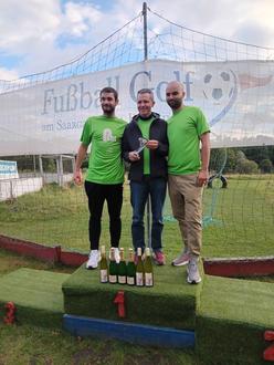 Nachdem im vergangenen Jahr das erste Turnier im Fußballgolf auf der Anlage in Beckingen für Teams der Landkreise Merzig-Wadern und Saarlouis stattfand und alle Beteiligten danach drängten, dass dieses Turnier unbedingt wiederholt werden soll, planten die Betreiber der Anlage, Monika und Bernd Hessel, für 2024 das 2. Turnier. Und tatsächlich waren in diesem Jahr mit Beteiligungen des Landkreises Merzig-Wadern, der Kreisstadt Saarlouis, der Kreisstadt Merzig, der Stadt Wadern sowie den Gemeinden Beckingen, Mettlach und Perl doppelt so viele Teams am Start als im vergangenen Jahr. 24 Mannschaften mit je 3 Spieler/innen traten gegeneinander an, um die Sieger im Dameneinzel, Herreneinzel und für ein Team auf den 18 Bahnen auszuspielen. In seiner Begrüßungsansprache und Regelerklärung zeigte sich Bernd Hessel zudem sehr erfreut darüber, dass sich sehr viele Damen gemeldet hatten, sodass sogar reine Damenflights gebildet werden konnten. Nach mehr als 2 Stunden Kampf und vielen Präzisionsschüssen standen nach der Auswertung die Sieger und Siegerinnen fest. Team-Sieger mit je 3 SpielerInnen mit 212 Schüssen wurde das Team 1 der Gemeinde Perl mit Bürgermeister Ralf Uhlenbruch, gefolgt von dem Team 1 des Landkreises Merzig-Wadern mit 224 Schüssen und der Gemeinde Mettlach mit dem Team das A-M-T mit 225 Schüssen. Im Einzel der Herren siegte Tom Setzen vom Landkreis Merzig-Wadern mit sehr guten 58 Schüssen vor Rudolf Hotz - Schäfer, ebenfalls Landkreis Merzig-Wadern mit nur 61 Schüssen. Den 3. Platz belegten Frank Henner und Andreas Hoffmann, beide von der Gemeinde Mettlach mit je 64 Schüssen. Das Einzel der Damen gewann in diesem Jahr Nicole Kerber vom Landkreis Merzig-Wadern mit 76 Schüssen. Den 2. Platz erreichte die Vorjahressiegerin, Jaqueline Hudzicki von der Kreisstadt Saarlouis mit 77 Schüssen, gefolgt von Jasmin Raffaele, ebenfalls Kreisstadt Saarlouis mit 86 Schüssen. Der Bürgermeister der Gemeinde Beckingen, Thomas Collmann, hatte in diesem Jahr die Schirmherrschaft für die Veranstaltung übernommen und spielte ebenfalls mit einem Team der Gemeinde Beckingen. Aber auch der Schirmherr des letzten Jahres, der Saarlouiser Oberbürgermeister Peter Demmer, ließ es sich nicht nehmen, in seinem Urlaub mit seiner Gattin zu erscheinen und der Siegerehrung mit Pokalen und kleinen Präsenten beizuwohnen. Danach wurden noch rege Gespräche geführt und Kontakte ausgetauscht. Manch einer, der im vergangenen Jahr noch nicht dabei war, meinte, dass er schon damals etwas verpasst hätte. Alle Mannschaften äußerten den Wunsch, die Veranstaltung im nächsten Jahr zu wiederholen.