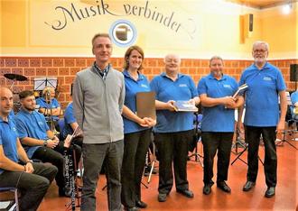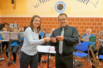 Taktstockübergabe der scheidenden Dirigentin Sabine Petit (links) an ihren Nachfolger Wolfgang Harig
