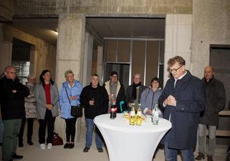 Für den Anfang März begonnenen Neubau der Kindertagesstätte St. Marzellus gingen die Arbeiten bisher zügig voran, so dass nun das Richtfest gefeiert werden konnte. Hierzu hieß Bürgermeister Thomas Collmann den Ortsvorsteher Elmar Seiwert, viele Gemeinderats- und Ortsratsmitglieder sowie die beteiligten Architektinnen, Architekten, Ingenieurinnen, Ingenieure, Vertreterinnen und Vertreter der Baufirmen wie auch die Bereichs- und Standortleiterinnen der Kita Katholischen eGmbH willkommen.. Er betonte dabei: „Es ist mir eine große Ehre, Sie heute zum Richtfest unserer neuen Kindertagesstätte St. Marzellus begrüßen zu können. Dieses Fest markiert einen wichtigen Meilenstein auf unserem Weg zu einem Projekt, das weit über die reine Bauleistung hinausgeht. Es ist ein Symbol für unsere gemeinsame Zukunft und unser Engagement für die jüngsten Mitglieder unserer Gemeinde. Mit dieser Kita schaffen wir einen Ort, an dem die Kinder nicht nur betreut, sondern gefördert, ermutigt und auf ihrem Weg in eine starke und selbstbewusste Zukunft begleitet werden. Der Neubau ist Ausdruck unserer Verantwortung, den Familien in Beckingen und darüber hinaus die besten Bedingungen zu bieten. Ein solches Vorhaben wäre jedoch ohne das engagierte und koordinierte Zusammenwirken vieler Beteiligter nicht möglich gewesen. Ich möchte an dieser Stelle meinen tief empfundenen Dank aussprechen: Den Mitgliedern des Gemeinderates und Ortsrates von Beckingen für ihre Unterstützung dieses Projekt zu ermöglichen. Den Architekten, Ingenieuren und Bauunternehmen, die mit ihrem Fachwissen und ihrer Hingabe die Vision dieser neuen Einrichtung Stück für Stück realisiert haben. Ein besonderes Dankeschön geht an die Bauverwaltung und unseren Gemeindebauingenieur Martin Speicher. Durch die gute Planung und viel Engagement ist es uns gelungen, dass die Maßnahme von den Kosten und Zeitablauf her voll im Plan liegt und wir heute hier stehen und dieses Richtfest feiern können. Diese Baustelle ist nicht nur ein Ort des Aufbaues, sondern ein Ort, an dem Gemeinschaft entsteht. Wir alle gemeinsam - von der Planung über die Umsetzung bis hin zur künftigen Betreuung - arbeiten Hand in Hand, um die Kinderbetreuung und Entwicklung in der Gemeinde Beckingen zu gewährleisten. Möge der Bau weiter erfolgreich und unfallfrei voranschreiten und die neue Kita St. Marzellus, sobald sie ihre Türen öffnet, ein lebendiger und freudvoller Ort für viele Generationen werden. Ich danke allen für ihr Kommen und und ihre Unterstützung.“ Lobende Worte für die Auftragserteilung durch die Gemeinde und die gute Arbeit der am Bau beteiligten Firmen sprach dann Dipl. Ingenieur Ernst Rauska namens des zuständigen Architekten-Büros „Bau eins“ aus Kaiserslautern aus. Bei einen Rundgang durch den Rohbau konnten sich die Gäste von der Anordnung der Räumlichkeiten und der Qualität der Arbeit überzeugen, ehe dann bei einem Imbiss auf das Ereignis angestoßen wurde.