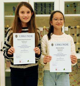 Die beiden Singbergschülerinnen Mila Accettura (5G3) und Helena Anjuli Kockmann (5G1) hatten sich in zwei Vorrunden gegen über 1.300 hessische Mitschüler ihrer Altersklasse durchgesetzt und zählten damit zu den nur 47 Fünftklässlern, die zur Landesrunde zugelassen worden waren.