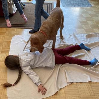 Einen langen Spaziergang bei gutem Wetter konnten die Teilnehmenden bei „Rund um den Hund“ mit Piri genießen. Beim Spielchen Piri-Pizza wurden die Kinder zur lebendigen Pizza für den kinderfreundlichen Begleithund.