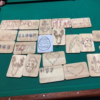Zum Abschluss der ersten Ferienspielwoche wurden kreative Nagelbilder mit Nagel und Faden erstellt. Die Kinder durften sich ihre Motive selbst aussuchen, sodass vom Anker über das Hirschgeweih bis hin zu Schriftzügen alles ausprobiert werden konnte.