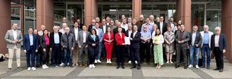 Kreisbeigeordnete und zuständige Dezernentin Marion Götz und Landrat Jan Weckler (vorne in der Mitte mit Gründungsurkunde) sowie Vertreterinnen und Vertreter der 22 Mitgliedskommunen und des Kreises freuen sich, dass mit der Beurkundung der neuen Gesellschaft ein wichtiger Schritt hin zu mehr bezahlbarem Wohnraum im Kreis getan ist.