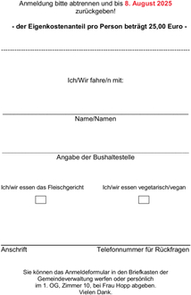 Anmeldung bitte abtrennen und bis 8. August 2025 zurückgeben!