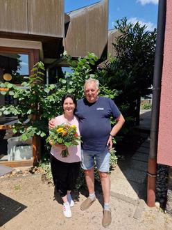 Auf ihrem diesjährigen Sommerfest des VdK Bingenheim konnte Vorsitzender Lothar Appel mit einem Strauß Sommerblumen Vivien Ebel als 350 Mitglied im Ortsverband aufnehmen.