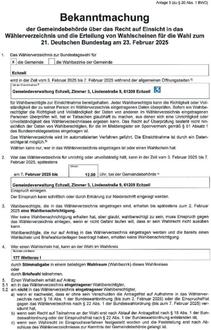 Vorheriger Artikel: Bekanntmachung auf Recht auf Einsicht in das Wählerverzeichnis