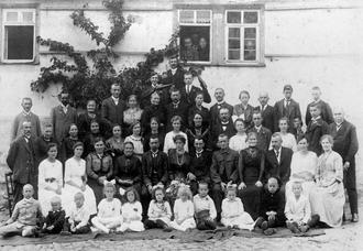 Auf dem Foto ist die Hochzeitsgesellschaft der Hochzeit von Otto Kölsch aus Heuchelheim und Emilie Beckel aus Bingenheim zu sehen. Das Bild haben wir vom Geschichtsverein Reichelsheim.