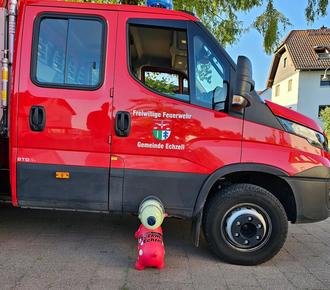 Die Jugendfeuerwehr Echzell freut sich über das neue Maskottchen und blickt optimistisch auf die kommenden gemeinsamen Aktionen. L(i)ebenswertes Echzell plant eine Wiederholung des Frühlingsfeuers im kommenden Jahr.
