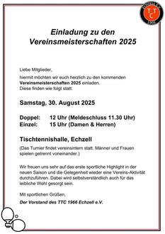 TTC 66 Echzell - Einladung zur Vereinsmeisterschaft