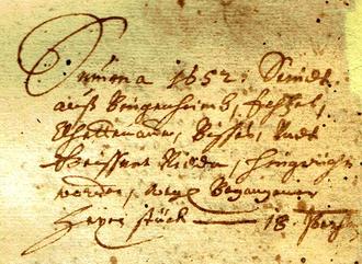 Der Text lautet: „Summa 1652: