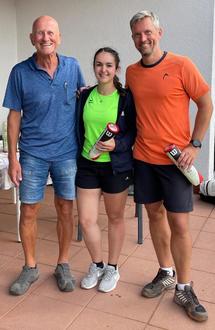 Im Mixed kann von einem besonders schönen Aspekt berichtet werden. Mehr als 4 Jahrzehnte gibt es freundschaftliche Verbindungen zum Nachbarverein, dem Tennisclub Horlofftal Reichelsheim. Und so nahmen zwei Damen aus Reichelsheim teil, Carina Fritz und Mailin Franosch, die mit unseren Damen in einer Spielgemeinschaft im HTV-Teamtennis 2023 angetreten sind. Nicht nur das, sondern die beiden Damen haben sich maximal erfolgreich eingebracht und sind im Finale aufeinandergetroffen. Damit war schon mal geklärt, dass Reichelsheim in jedem Falle den weiblichen Part der Vereinsmeister 2023 im Mixed stellt.