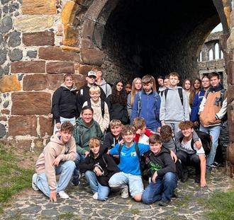 Die Klassen 8R1 und 8R2 machten sich am 17. September auf den Weg zur Burg Münzenberg. Bei bestem Wanderwetter - der angekündigte Regen blieb glücklicherweise aus - legten die Schülerinnen und Schüler die 7,5 Kilometer mit Freude und erstaunlich viel Schwung zurück. Unterwegs wurde bereits fantasiert, wie es wohl gewesen sein muss, in schwerer Ritterrüstung den Burghügel zu erklimmen.