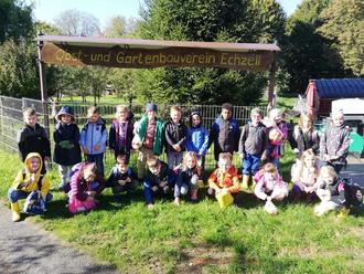 Am Freitag, den 7. Oktober, liefen 21 aufgeregte Erstklässler der Kurt-Moosdorf-Schule mit ihrer Klassenlehrerin Michaela Welter zum Obst- und Gartenbauverein, um dort frischen Apfelsaft zu pressen und natürlich auch zu probieren.