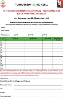| Meldungen: | Meldungen mit Meldeformular per eMail an: leichtathletik@tv-echzell.de Infos unter: Christian Wolf, 0178 - 490 30 90 oder eMail (s.o.) |