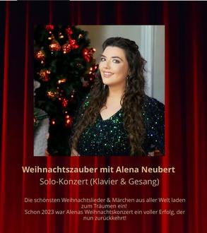 Für Samstag, den 21.12.24 um 19:00 Uhr haben wir Karten für die Aufführung des Weihnachtszauber mit Alena Neubert im Fortuna Theater Heuchelheim. Das Kontingent ist jedoch begrenzt, wer eine Karte für 24,00 € bestellen möchte, sollte sich zeitnah bei Gudrun melden.