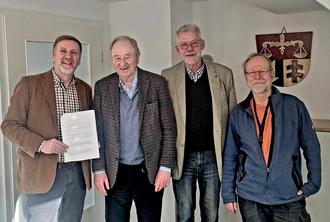 Foto: © Gemeinde Echzell (v.l.n.r.) Bürgermeister Wilfried Mogk, Dr. Hansgeorg Jehner, Erster Beigeordneter Dr. Jochen Degkwitz, Dipl. Ing. Gottfried Lehr