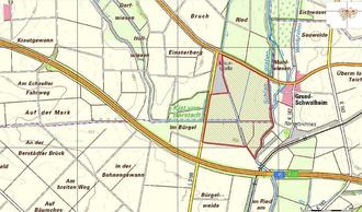 | Die Flächen sind in anhängender Karte schraffiert dargestellt. |