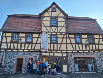 Passend zum Sachunterrichtsthema Echzell und Kartenkunde freuten sich am Dienstag, den 28.02.25, 18 Piratenkids der Klasse 3b mit ihrer Klassenlehrerin Frau Welter auf einen gemeinsamen Ausflug ins Echzeller Heimatmuseum. Dort wurden sie um 10Uhr von Herrn Degkwitz und Frau König ganz herzlich begrüßt. Zum Einstieg in die Echzeller Vergangenheit, aber auch Gegenwart, wurde ein 15minütiger Film gezeigt. Interessiert und aufmerksam verfolgten alle 3b Kinder diese Dokumentation im Zeitalter der Römer und des Limes. Anschließend startete man in zwei Gruppen zum informativen Museumsrundgang. Dabei durfte die, in Teilen nachgebaute, Jupitersäule natürlich nicht fehlen. Am Ende eines schönen und insbesondere lehrreichen 90minütigen Aufenthaltes im heimischen Museum, bedankten sich Frau Welter und ihre Piraten ganz herzlich bei Herrn Degkwitz und Frau König für deren tolles Engagement und die vielen Einblicke in die Echzeller Geschichte. Am Dienstag, den 25.März 2025, steht dann, mit dem Besuch des Echzeller Rathauses, der nächste Ausflug der Piratenklasse auf dem Programm.