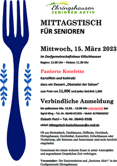 Hier noch folgender Hinweis: Durch die Vollsperrung der Landstraße zwischen Niederlemp und Kölschhausen ist es für Mitfahrer aus Kölschhausen und Dreisbach falls sie nicht abgeholt werden wollen dringend erforderlich, sich bei Willi Gombert (Tel.-Nr. 06443 3760) Dienstags abzumelden. Dies spart den Fahrern nicht nur Zeit sondern der Gemeinde auch Betriebskosten.