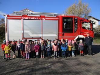 Drei Tage später waren die Vorschulkinder abends um 17.30 Uhr in die KiTa eingeladen, um an einer Feuerwehrübung der Feuerwehr Kölschhausen und Niederlemp teilzunehmen.