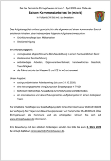 Stellenausschreibung Saison-Kommunalarbeiter/-in