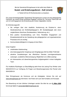 Stellenausschreibung Sozial- und Erziehungsdienst