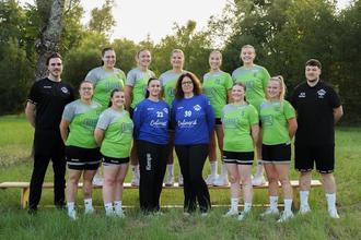 Hinten von links: Lina Messerschmidt, Leonie Huttel, Hanna Weber, Carina Spieß, Laura Blecker. Vorne von links: Trainer Marcel Hofmann, Stephanie Wölbing, Sina Aichholzer, Duygu Kilic, Sonja Keiner, Leoni Aichholzer, Carlotta Krämer, Co-Trainer Kevin Hase.