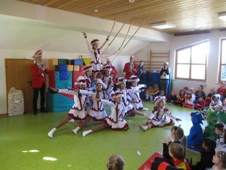 Nach dem gemeinsamen Frühstück besuchte uns der KCD mit seinen Garde Tänzerinnen, ganz besonders toll war die Vorführung der Fuzzi Garde, wo einige Kindergarten-Mädchen von uns mittanzen.