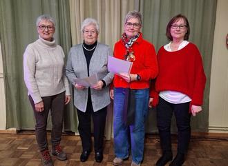 Die Geehrten: 2. v.li. Toni Sattler, 2. v.re. Jutta Huttel, re: 2. Vorsitzende Stefanie Lamers, li.: 1. Vorsitzende Ellen Langlouis