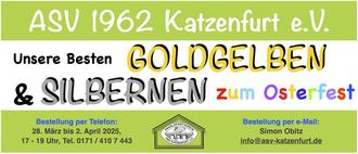 Die Goldgelben werden von den Katzenfurter Anglern nach dem altbewährtem Räucherverfahren und mit geheimer ASV-Rezeptur zu schmackhaften goldgelb geräucherten Forellen zubereitet. Die Silbernen sind fangfrisch und küchenfertig zubereitet. Zur Zubereitung zu Hause werden die Angler wieder eine spezielle Gewürzmischung bereitstellen. Eine wahre Gaumenfreude, passend zu den Ostertagen.