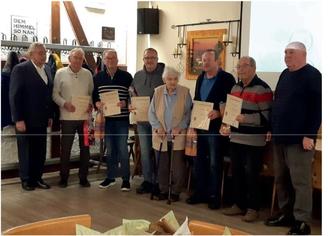 Geehrt wurden: Berthold Raabe, Heinrich Huttel, Dieter Lehmann und Hilde Nusko für 20 Jahre Mitgliedschaft. Norbert Lehmann und Anna Tobisch wurden für 25 Jahre geehrt. Bereits seit 60 Jahren gehören Walter Lehmann und Adolf Martin dem Verein an.