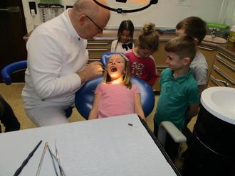 Die Vorschulkinder waren eingeladen in die Praxis ihres Patenschaftszahnarztes Frank Schmale in Ehringshausen.