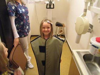 Im Röntgenzimmer konnten sie alle einmal die schwere Bleiwesre anziehen. Zum Abschluß bekam jedes Kind noch ein kleines Geschenk. Herzlichen Dank an Herrn Frank Schmale und sein Praxisteam, das wir die Praxis mal unter die Lupe nehmen konnten.