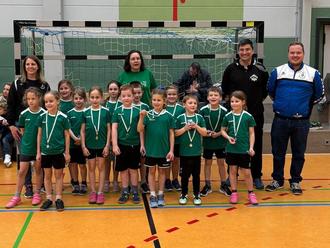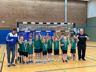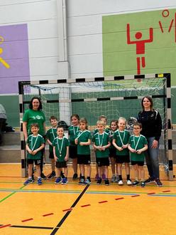 Für die HSG-Midis spielten 13 Kinder in zwei Teams: Marie, Niklas, Hannah, Nelly, Hanna, Kate, Elli, Mira, Leo, Theo, James, Pauline, Leni.