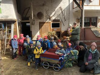 Die Kinder des Waldkindergartens „Die Waldmäuse“ besuchten am 03.04.2023 Familie Daniel in Ehringshausen.