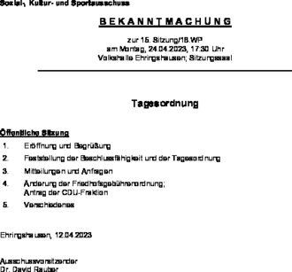 | 2. | Feststellung der Beschlussfähigkeit und der Tagesordnung |