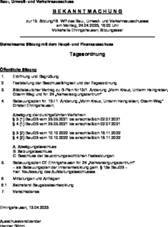 | 4. | Bebauungsplan Nr. 13 / 1. Änderung „Vorm Kreuz, Unterm Haingraben, Oberm Weg" |