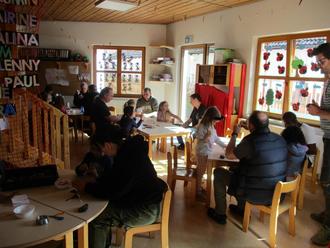 Nach getaner Arbeit waren alle großen Bastelmeister noch zum Kaffeetrinken eingeladen und für die kleinen Bastelmeister stand Wasser bereit.