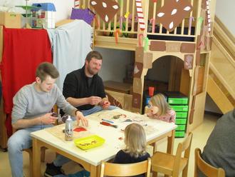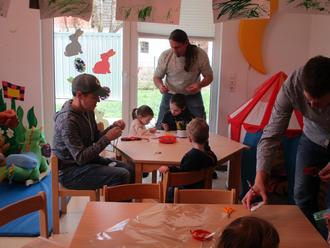 Alle Kinder konnten mit ihrem Papa, Oma, Opa, Tante oder Onkel das Muttertagsgeschenk zusammen basteln.
