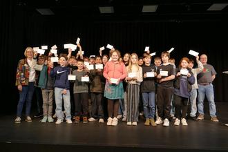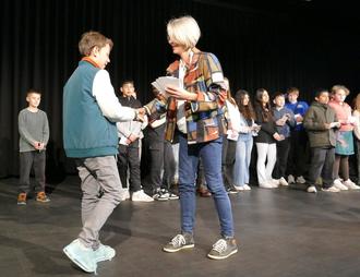 Am Tag der Auslosung waren dann alle Fünft- und Sechstklässler zusammen in der Aula, wo es dann um die Verteilung der Preise ging. Schulleiterin Annegret Schilling und Organisator sowie Vorstandsmitglied des Fördervereins, Marc Schäm, losten unter den zahlreichen richtigen Antworten jeweils fünf Tagessieger aus.