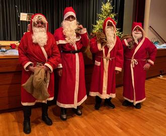 Während des Liedes: „Lasst uns froh und munter sein“ überraschten vier Weihnachtsmänner mit prall gefüllten Säcken die Anwesenden und verteilten Geschenke an alle.