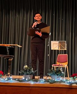 Die Pianistin Lisa Tauscher aus Breitenbach stimmte das Publikum mit einem weihnachtlichen Potpourri am Piano ein. Gemeinsam mit Wilfried Faber, Steffen Beppler, Lisa Tauscher und Monika Lasse wurde zusammen mit dem Publikum der Kanon „Froh zu sein bedarf es wenig“ und weitere bekannte Advents- und Winterlieder gesungen.