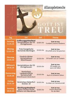 | um 10.00 Uhr, | Auftakt der Allianz-Gebetwoche |