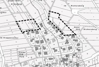 Das zweigeteilte Plangebiet schließt sich nördlich an die Bebauung in den Straßen „Am Rickersberg“ und „Im Altenbach“ an.