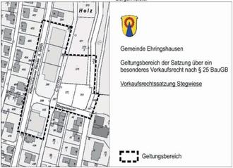 Der Gemeinde Ehringshausen steht zur Sicherung einer geordneten städtebaulichen Entwicklung im Bereich zwischen Kölschhäuser Straße und dem Kaiserin-Auguste-Victoria-Krankenhaus an der Straße „Stegwiese“ gemäß § 25 Abs. 1 Nr. 2 BauGB ein besonderes Vorkaufsrecht zu.