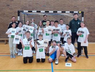 Zum guten Schluss gab es für die Kinder der Klasse 6e nicht nur eine Urkunde für die Teilnahme am Training, sondern auch noch Eintrittskarten für das Hessenderby gegen die MT Melsungen.