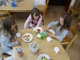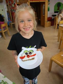 Als nächstes wurde Butter „gezaubert“ und anschließend wurde fleissig Gemüse und Obst geschnippelt und auf Brotscheiben entstanden fröhliche Brotgesichter, die sich alle schmecken liesen.