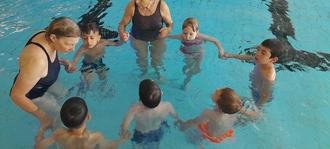 Seit Sommer 2023 gehen 31 Vorschulkinder der KiTa „Dillwiese“ in drei Gruppen jeden Dienstagvormittag ins Haverhillbad Ehringshausen. Begleitet werden die Vorschulkinder dabei sowohl von drei erfahrenen Rettungsschwimmern des Turnvereins Ehringshausen, als auch von einer Fachkraft aus der KiTa Dillwiese.